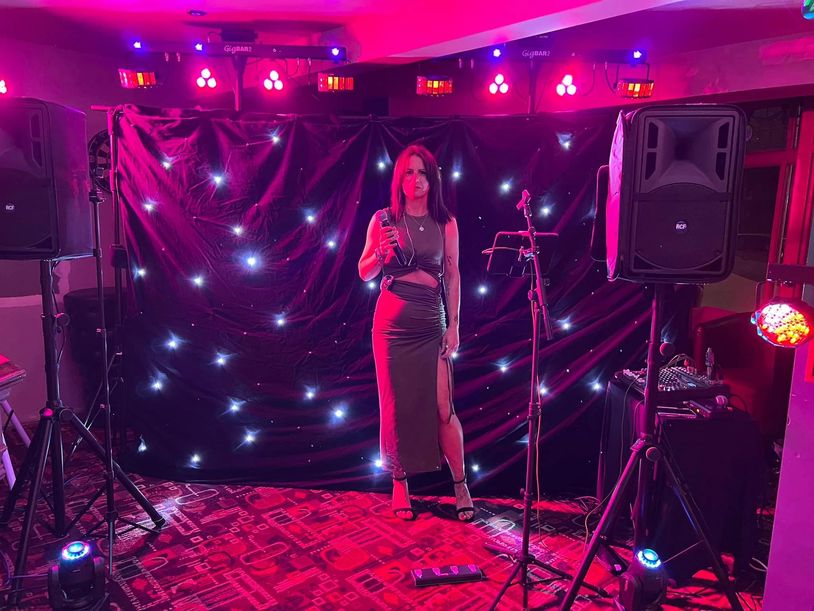 Her top quality PA and lighting systems as well as her friendly confident stage presence all add to a professional, high energy and fun filled evening for any venue.